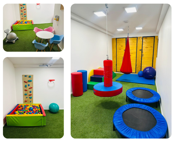 Contamos con un gimnasio implementado para realizar intervenciones motoras, sensoriales y cognitivas. Además de una infraestructura moderna con un espacio cómodo y amigable. En este espacio, además realizamos talleres para niños y/o padres enfocados a la estimulación, educación y ejercicios. Actualmente estamos realizando talleres de fortalecimiento de piso pélvico, preparación para el parto y de estimulación temprana.